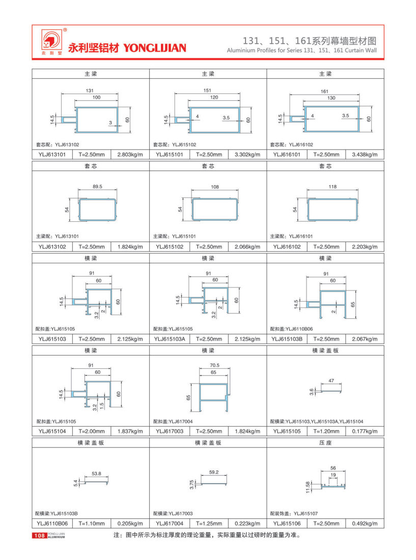 131, 151, 161 series semi concealed and exposed frame curtain walls