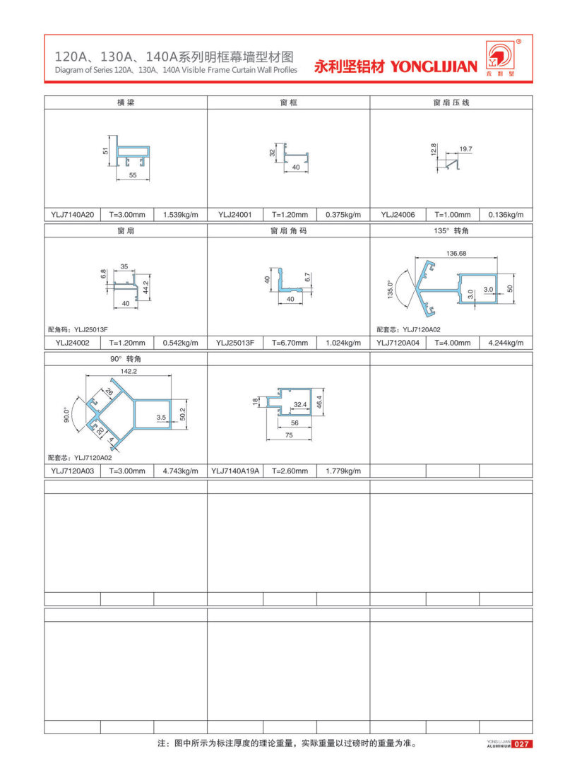 120A、130A、140A系列明框幕墙