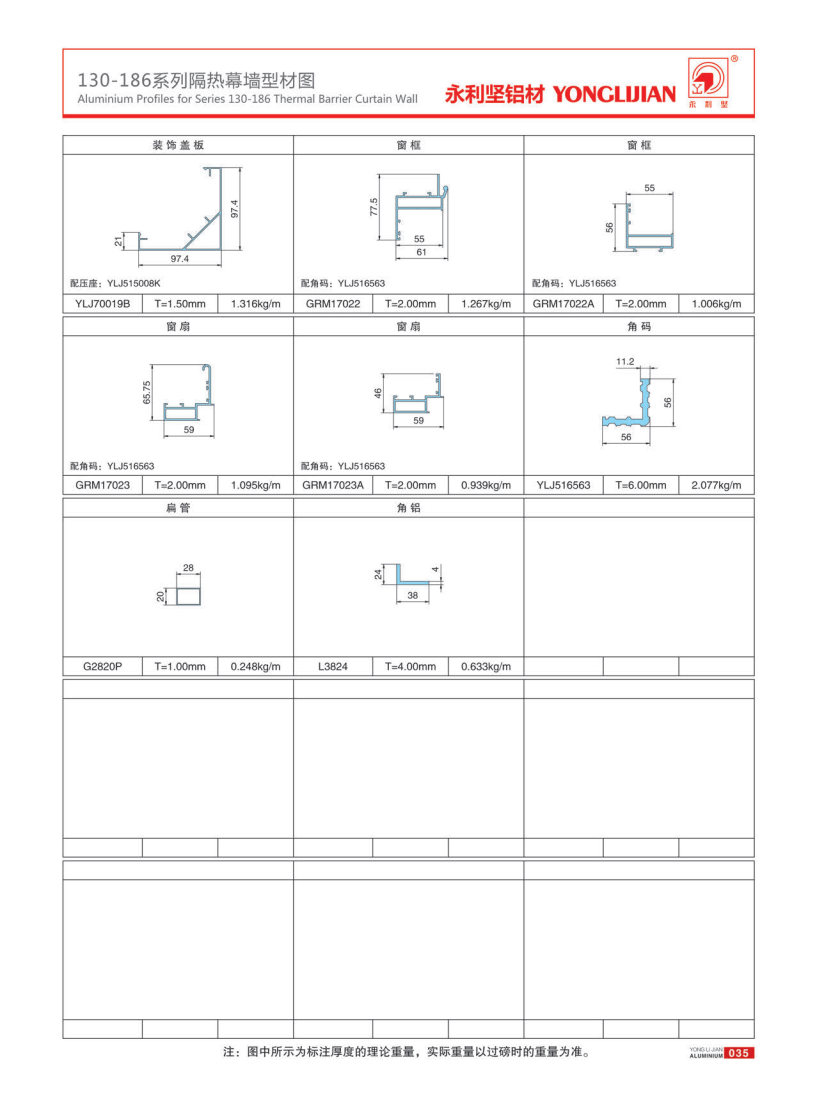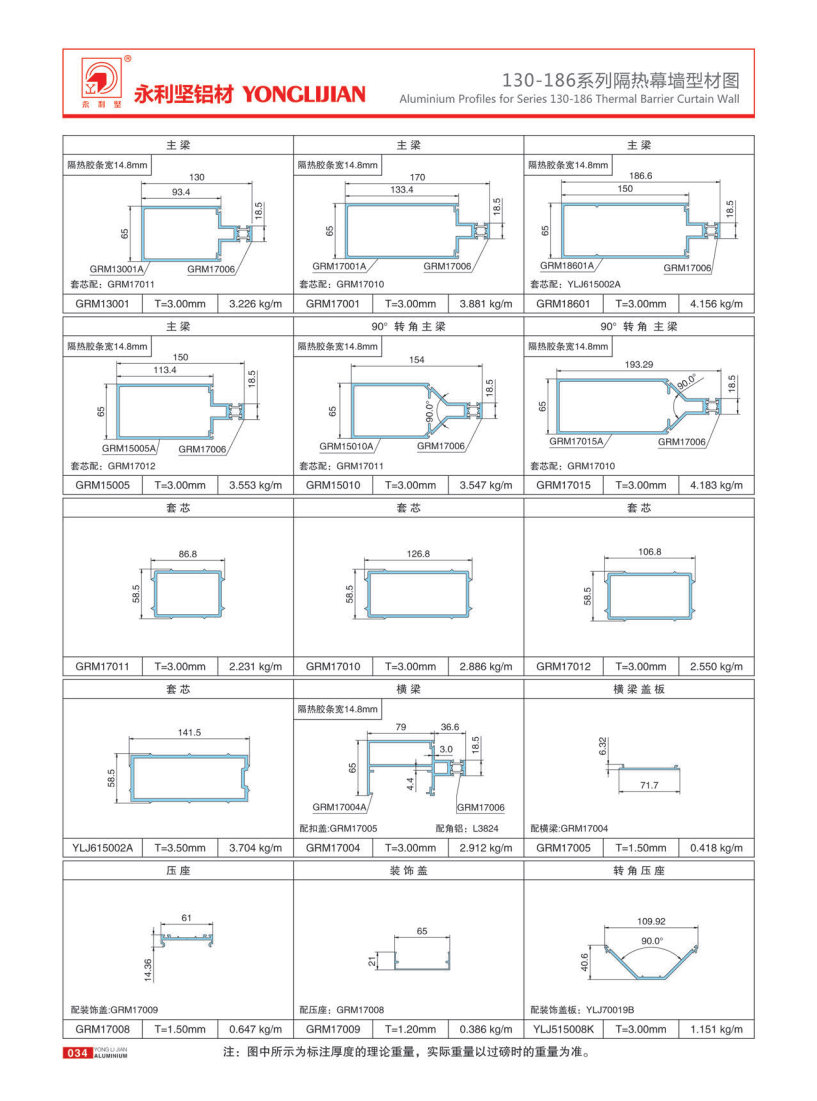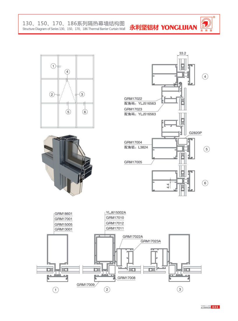 130, 150, 170, 186 series of visible frame thermal insulation curtain walls