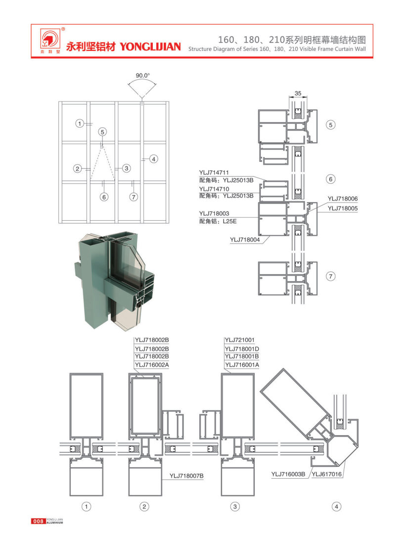 160, 180, 210 series visible frame curtain walls