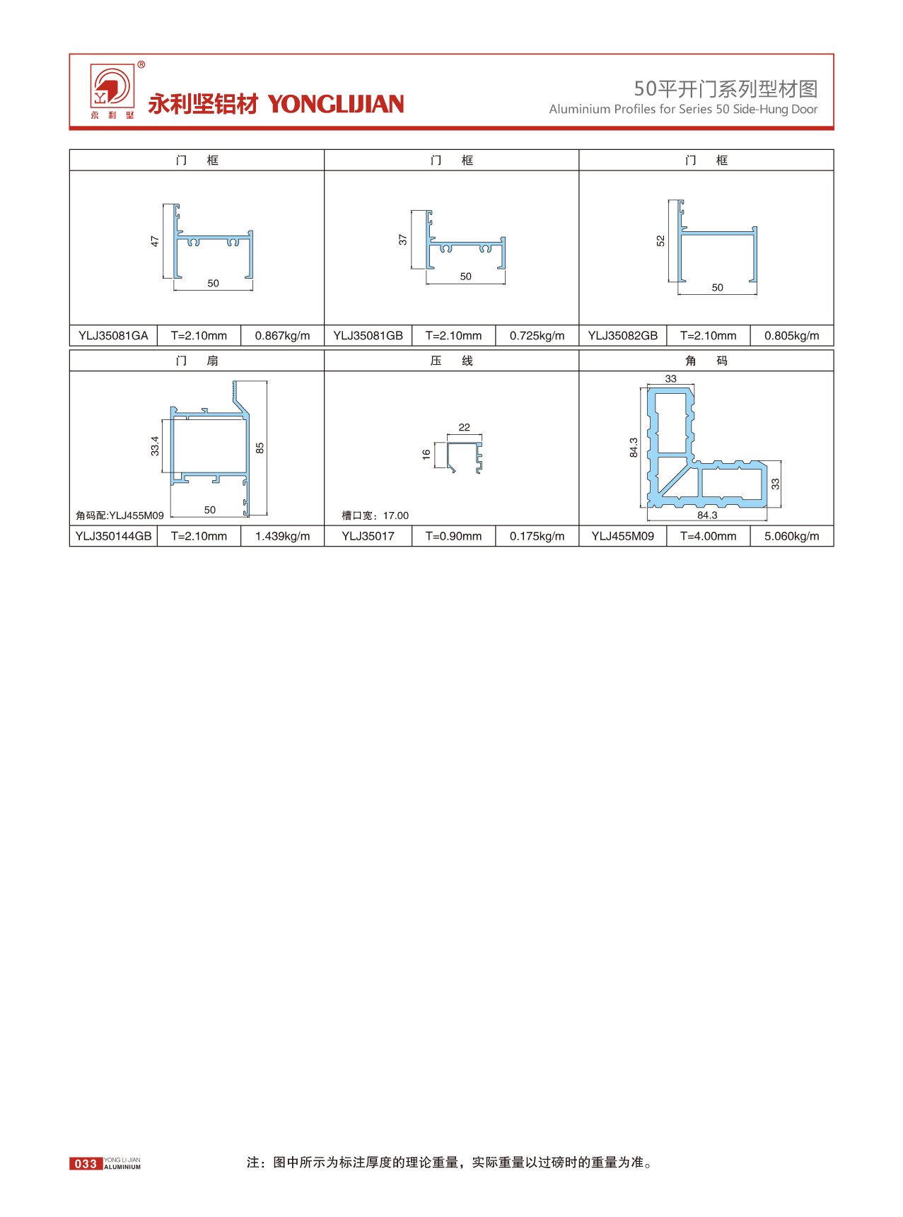 50系列平开门(2.1厚)