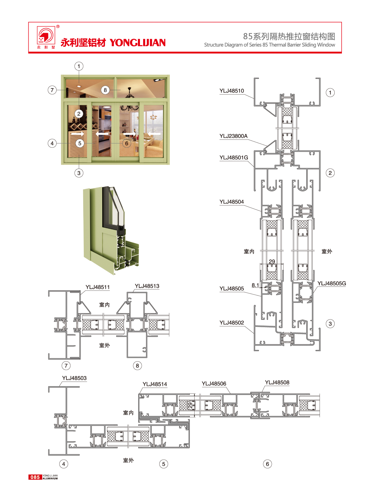 85 series insulated sliding window