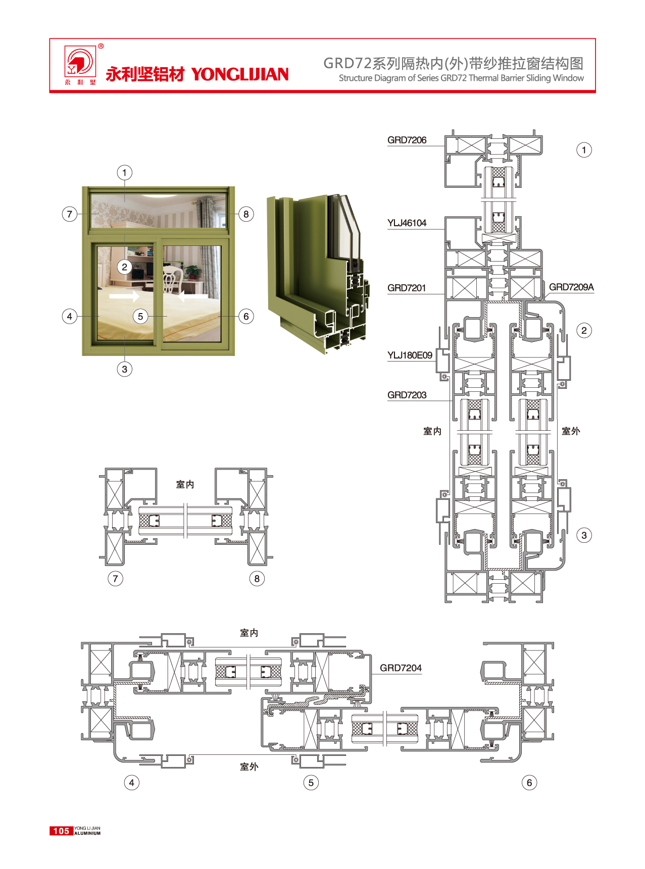 GRD72系列隔热内(外)带纱推拉窗