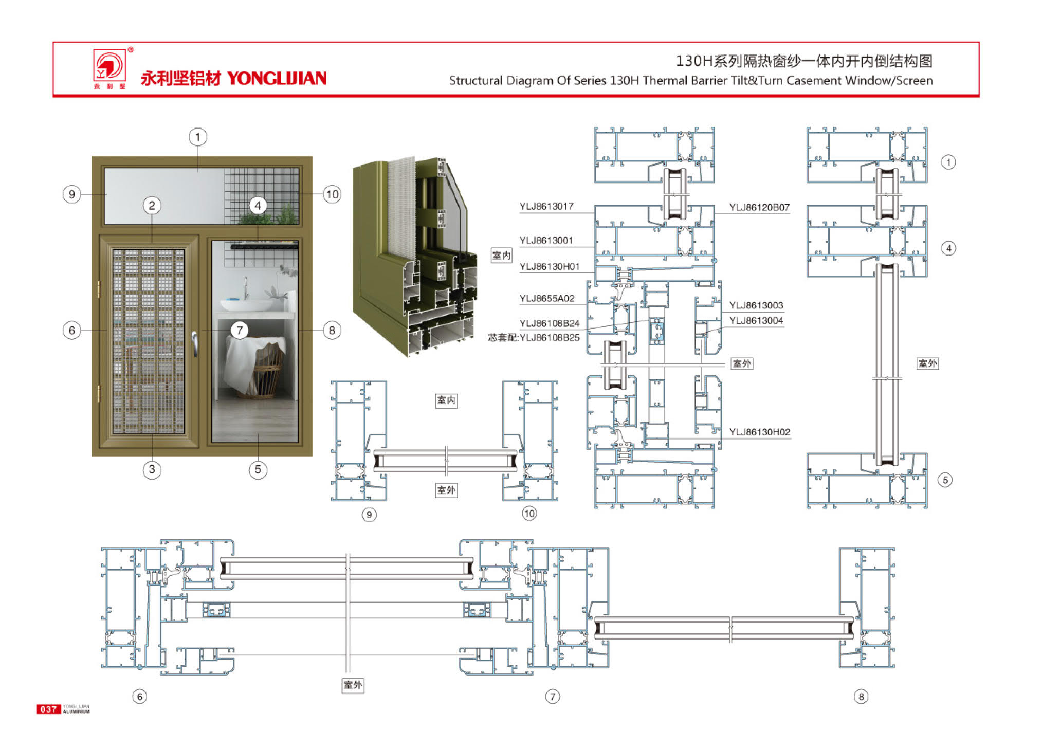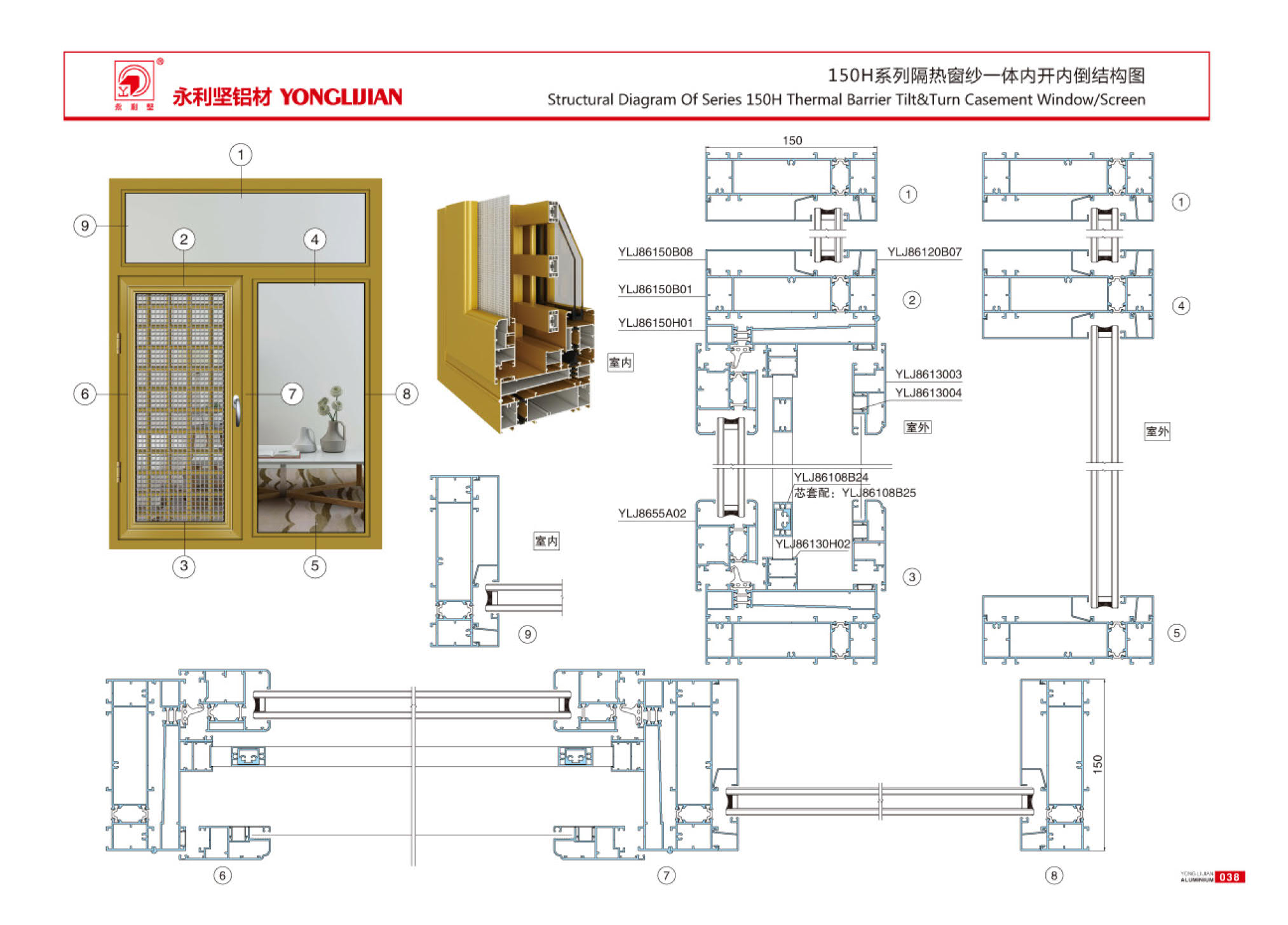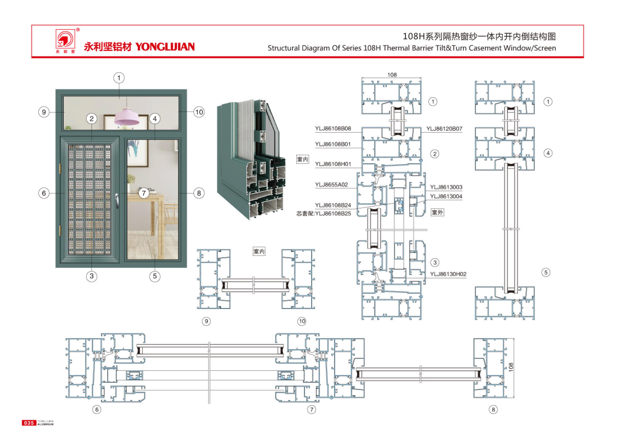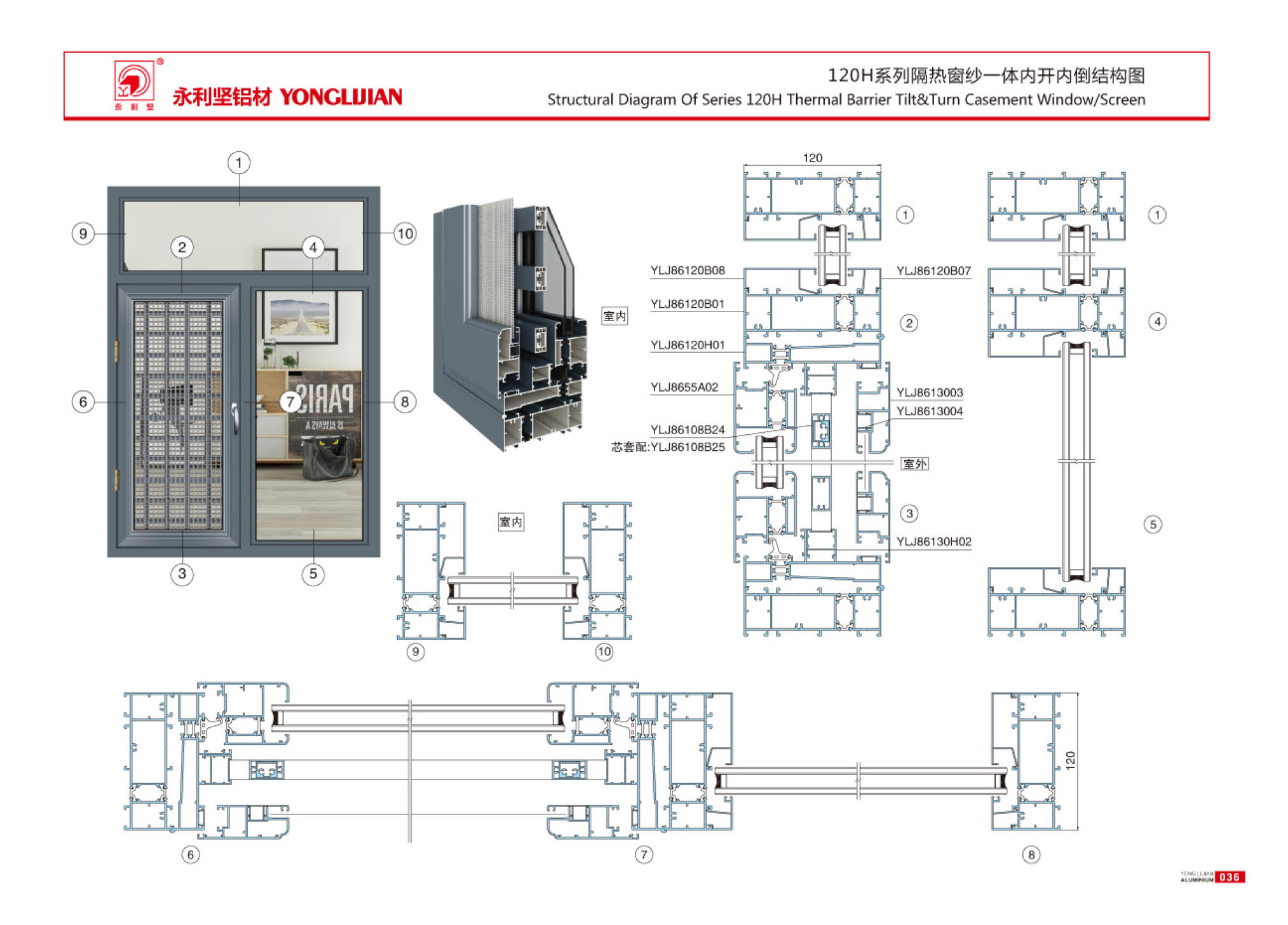 108H, 120H, 130H, 150H series insulated window screen with internal opening and inverted window series