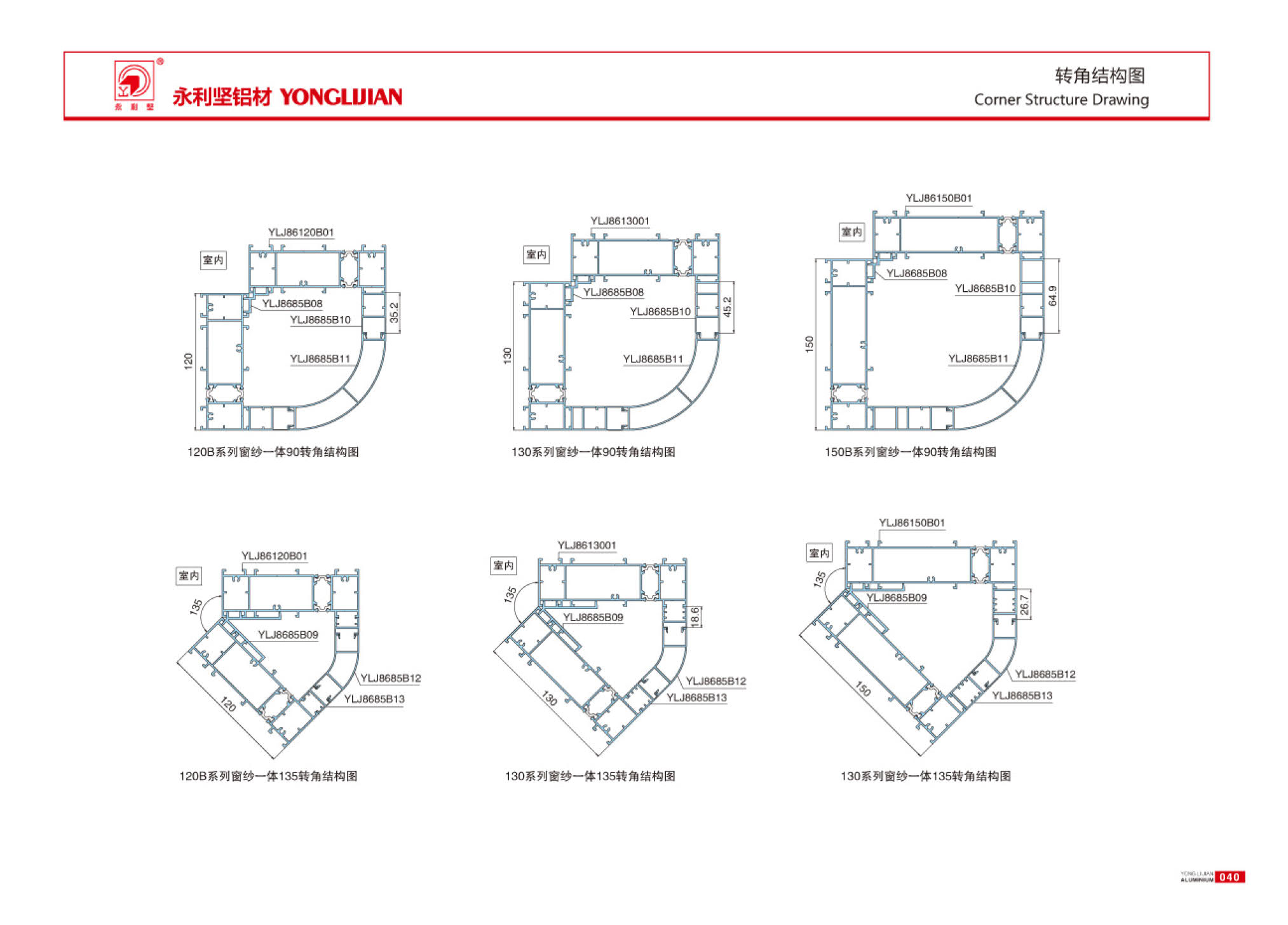 108H、120H、130H、150H系列隔热窗纱一体内开内倒窗系列