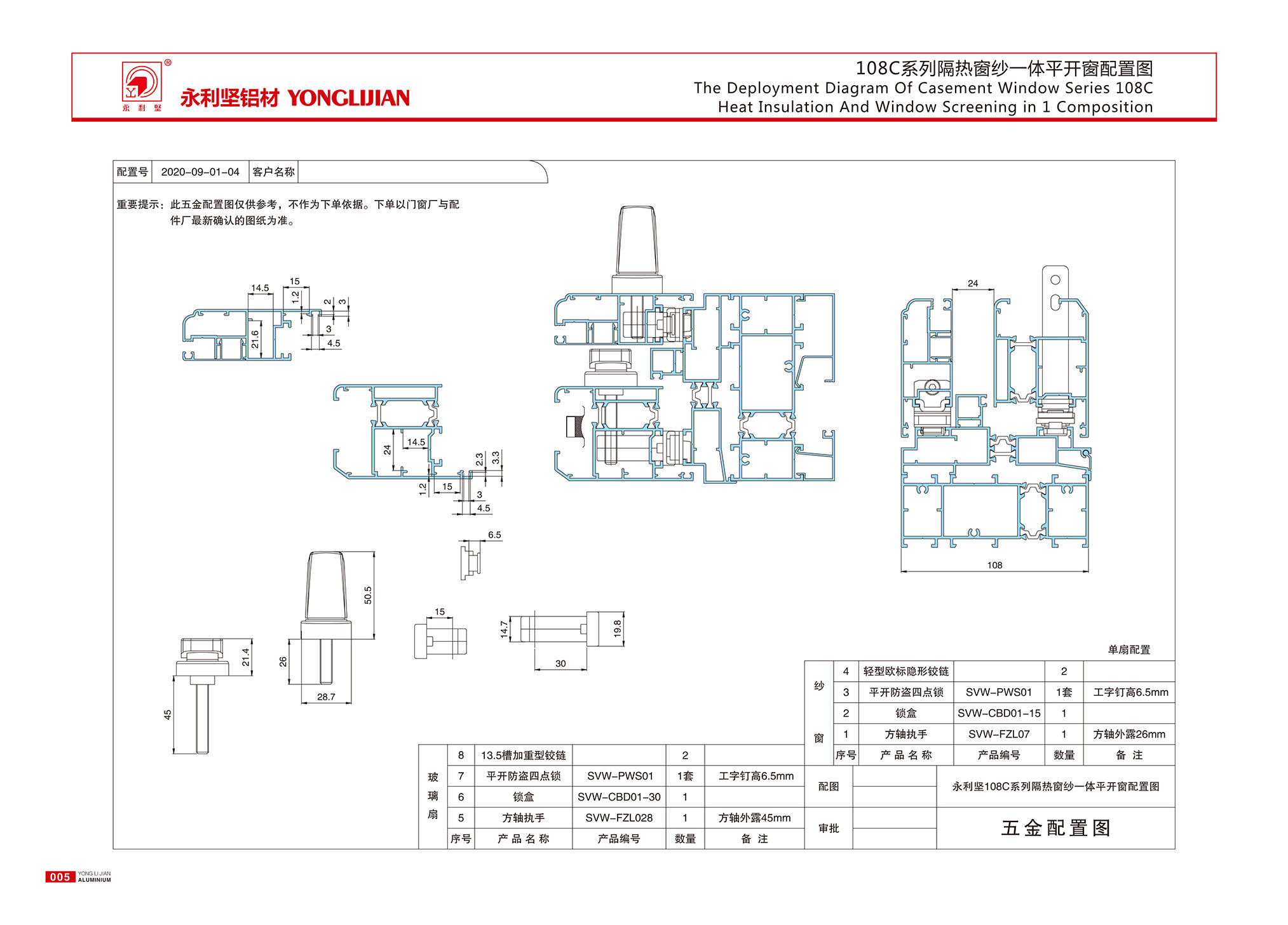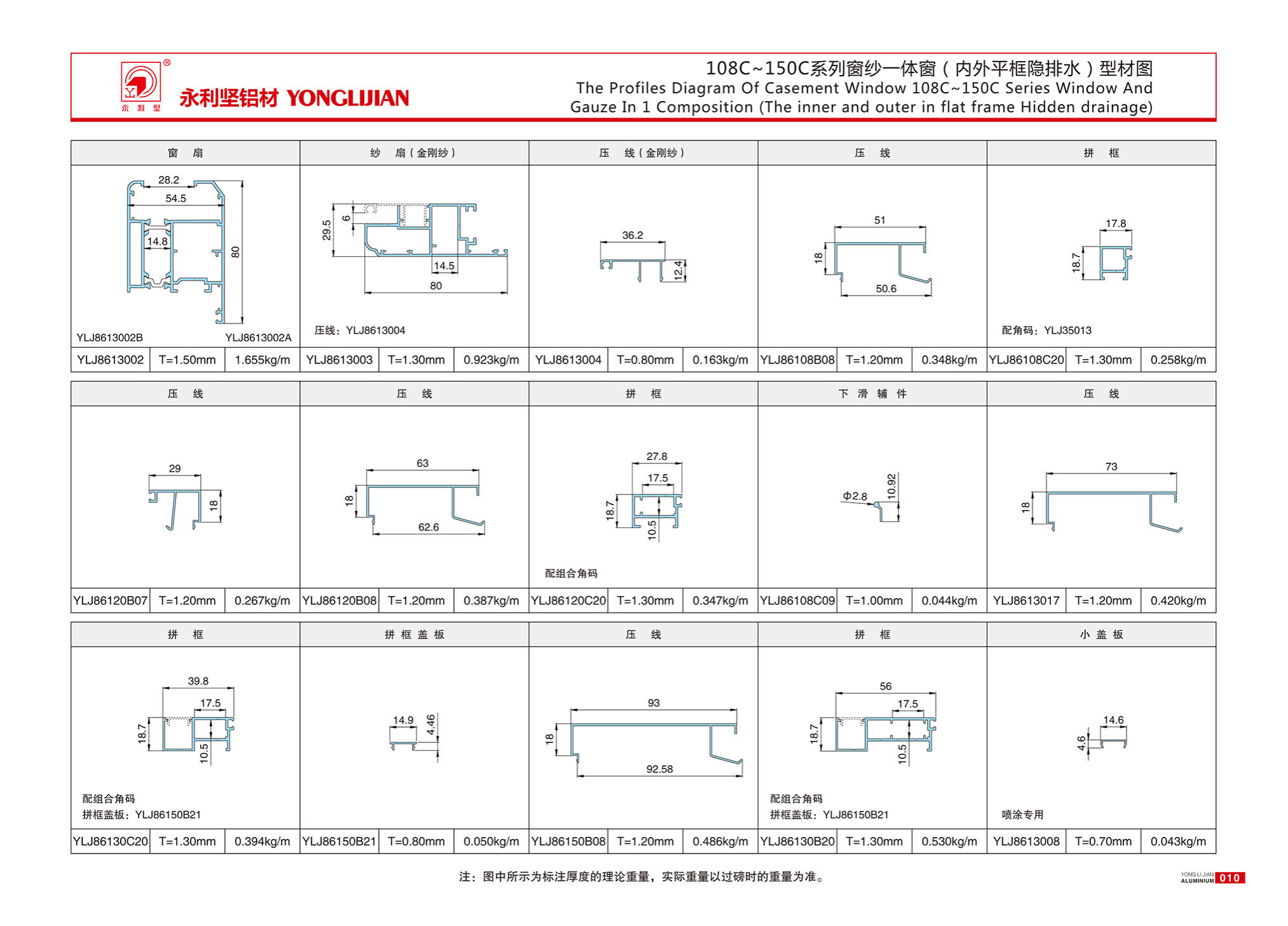108C series insulated window screen integrated window (inner and outer flat frame, concealed drainage)
