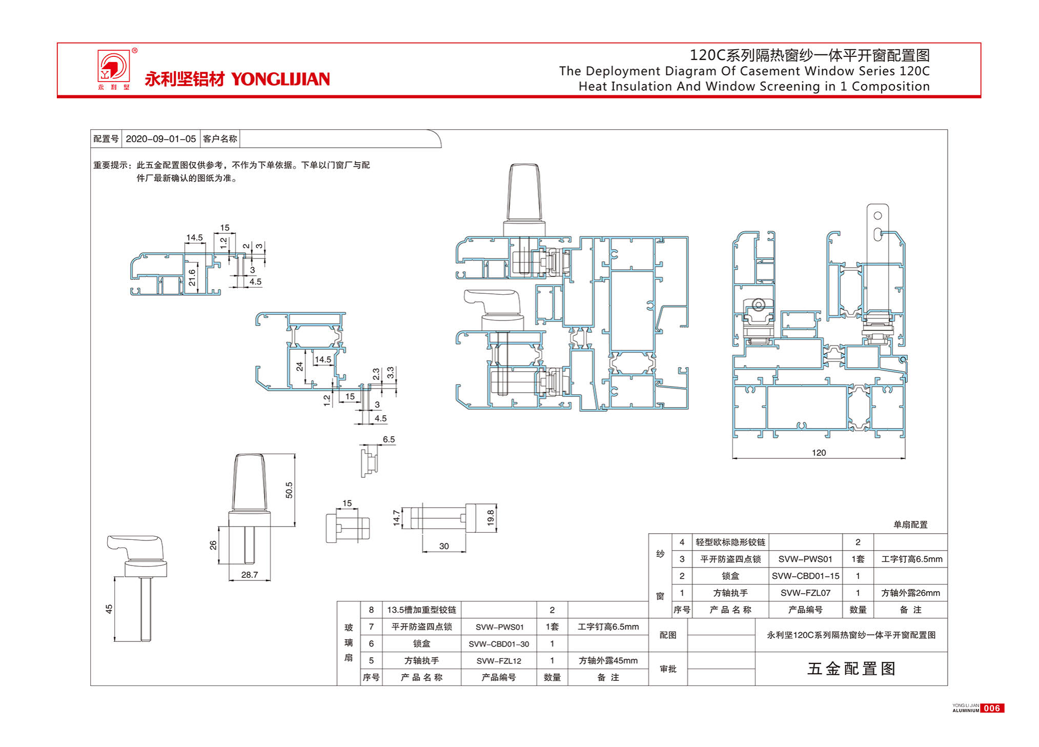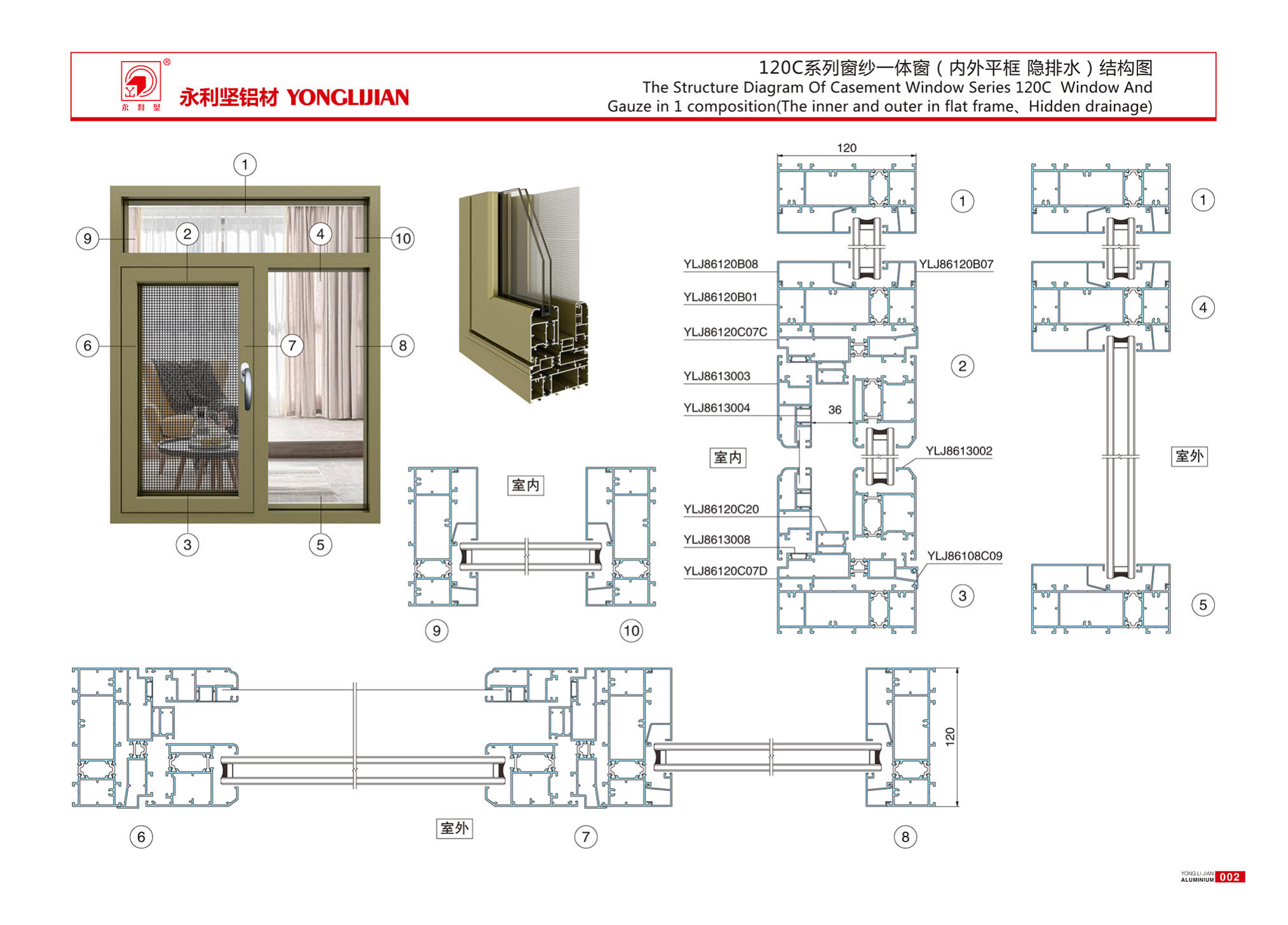120C series insulated window screen integrated window (inner and outer flat frame, concealed drainage)