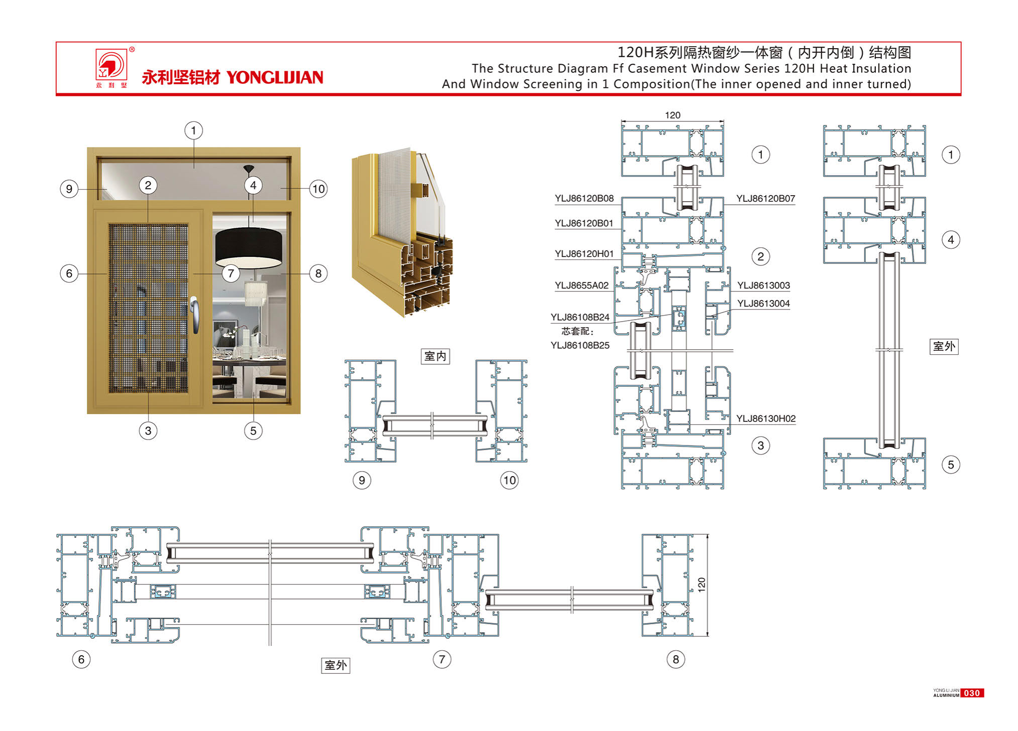 120H series insulated window screen integrated window (inward opening and inward tilting)