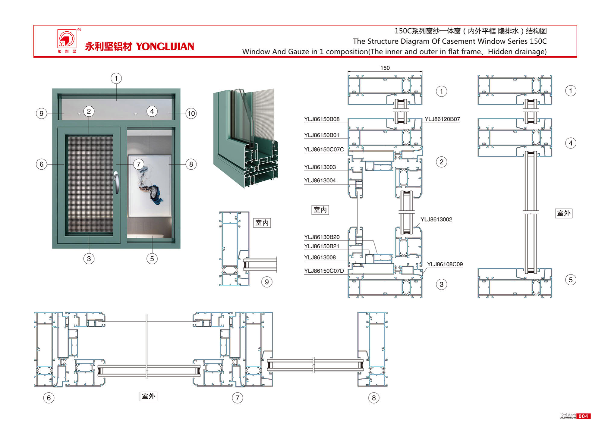 150C series insulated window screen integrated window (inner and outer flat frame, concealed drainage)